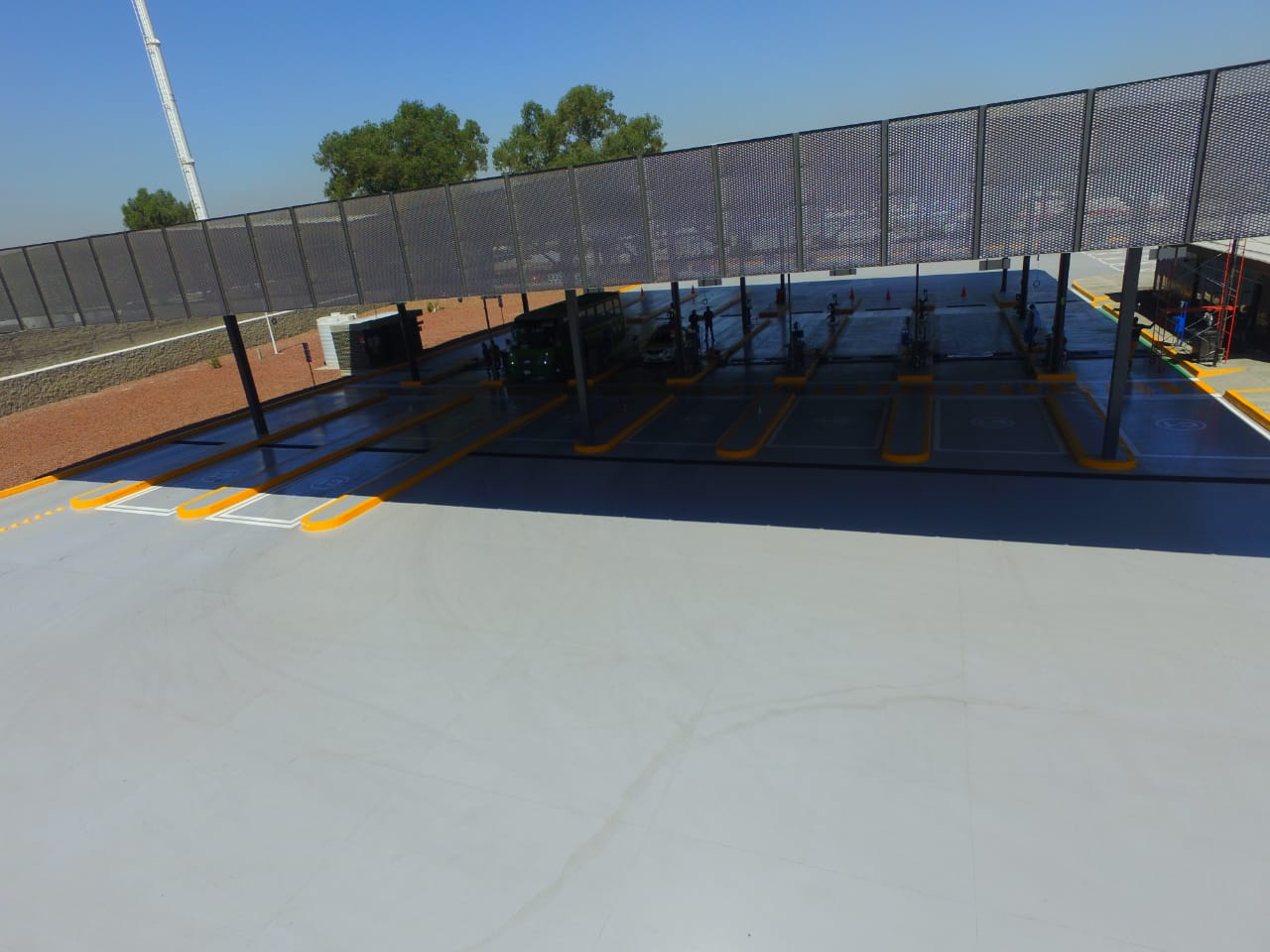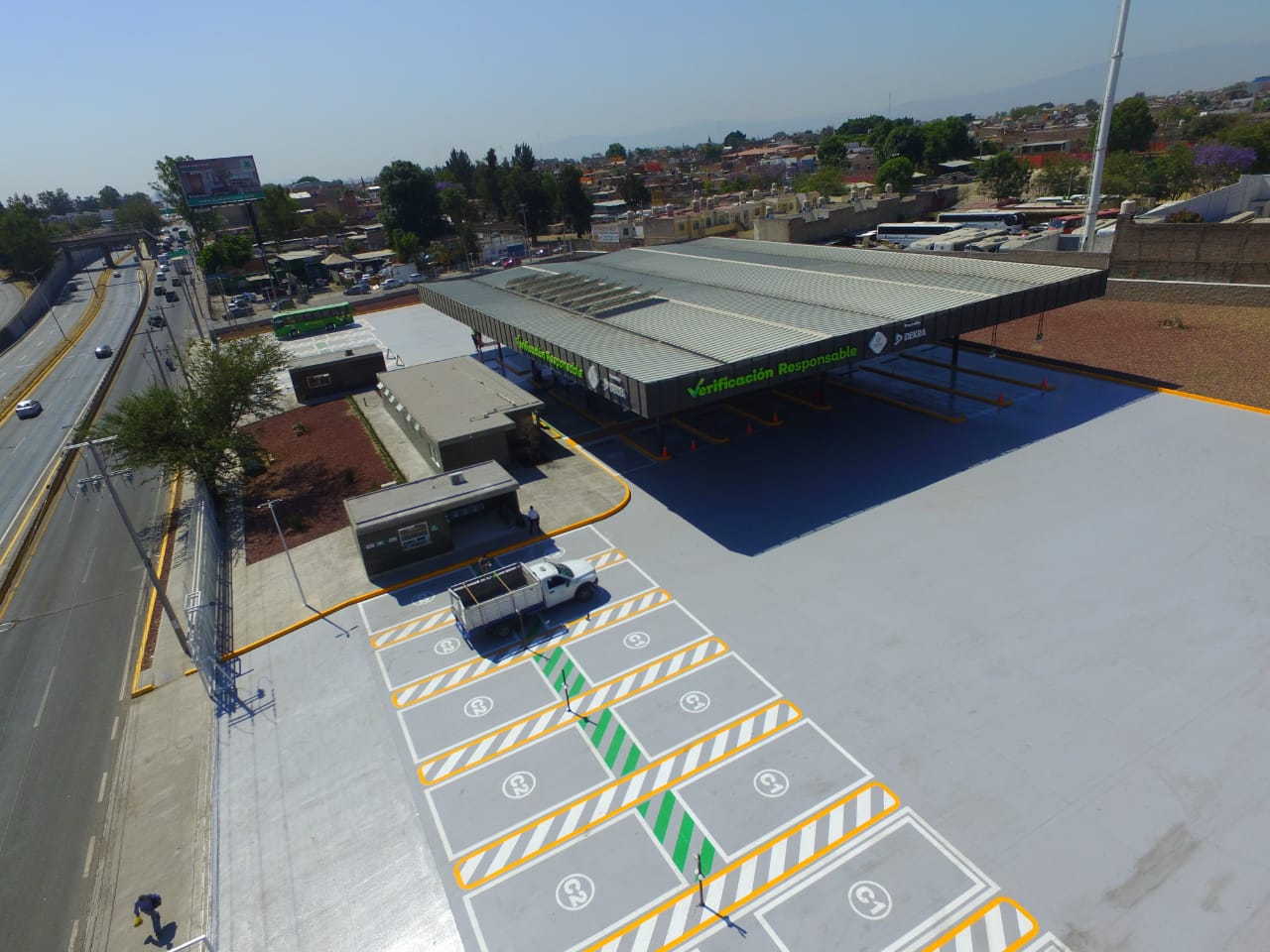 Diseño y Construcción de centro de verificación responsable para vehículos ligeros y de grandes dimensiones. Ubicado en Tlaquepaque, Jalisco. Cuenta con 7 líneas para pruebas de control de emisiones, de las cuales 5 son T1 cvr para autos a gasolina, gas LP y gas natural; y dos lineas T2 cvr dual para autos y camiones Diesel. La superficie de terreno es de 10,433.34 m², una superficie de concreto de 6,451.36 m² y una gran cubierta metálica de 1,941.80 m².