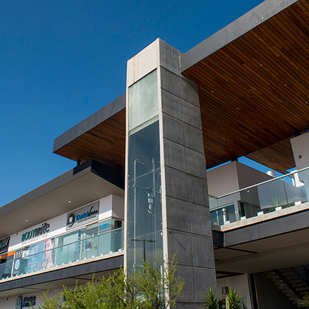 Proyecto y construcción de plaza comercial ubicada estratégicamente en Tlajomulco, Jalisco. Cuenta con una superficie total de 4,644.23 m² y un área rentable de 3,159 m² a dos niveles, 33 locales comerciales y 85 espacios de estacionamiento.